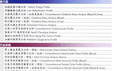 評估包含自然醫學、中醫學經絡、身心醫學、量子醫學、主流生化、特殊生化、功能醫學等,綜整上述檢測報告,以不同角度,提供您解說與建議。